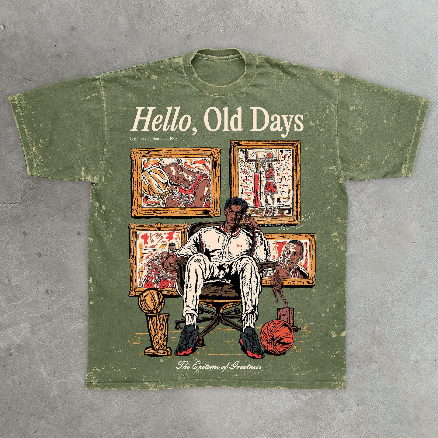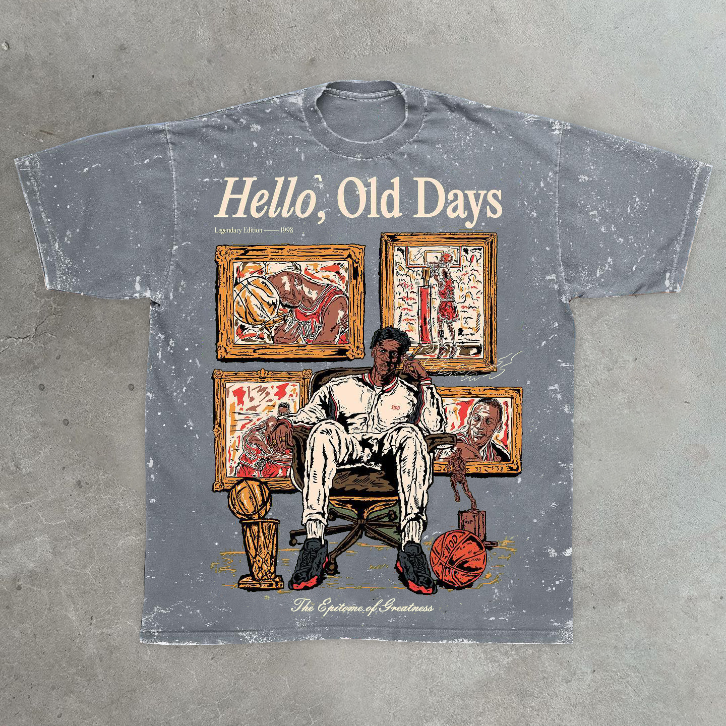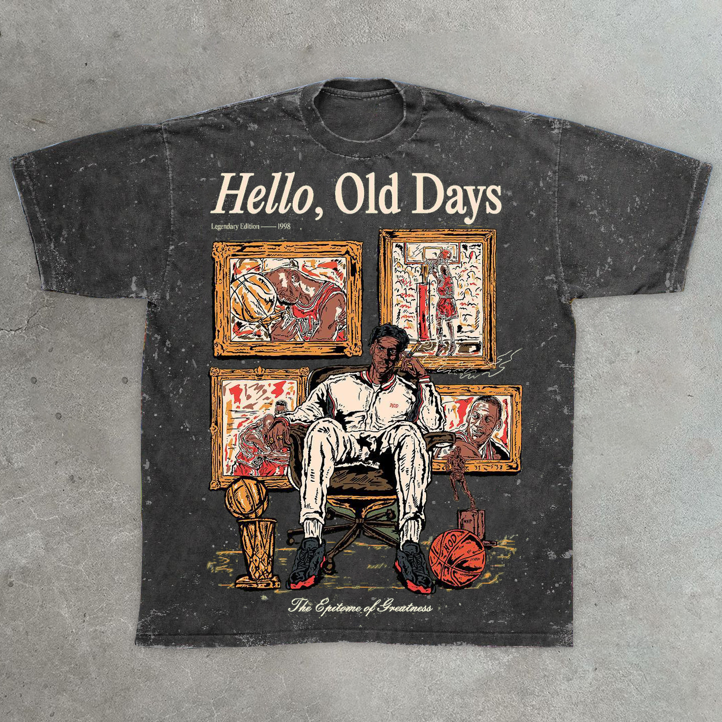 Old Times Casual Street Retro Washed Basketball T-Shirt